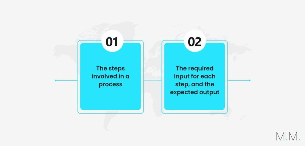 An easy-to-read visual representation of a task\’s main steps from input to output.